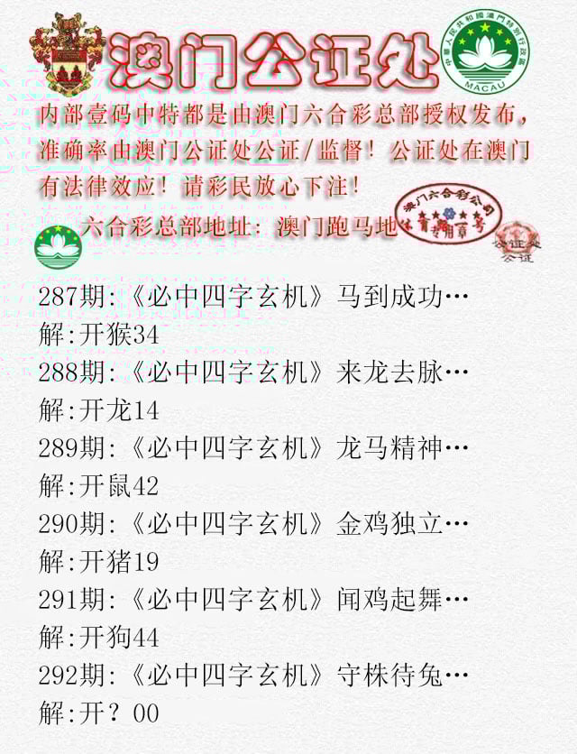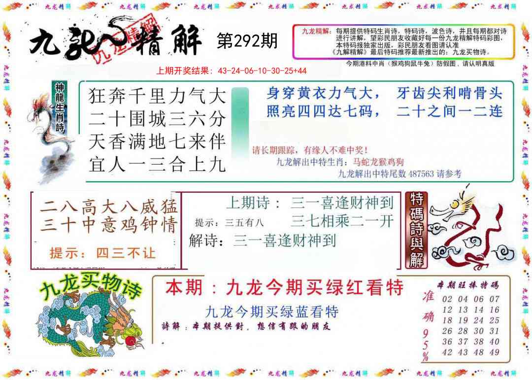 292期: 【马蛇猴牛虎鼠兔羊龙】 开? 00准